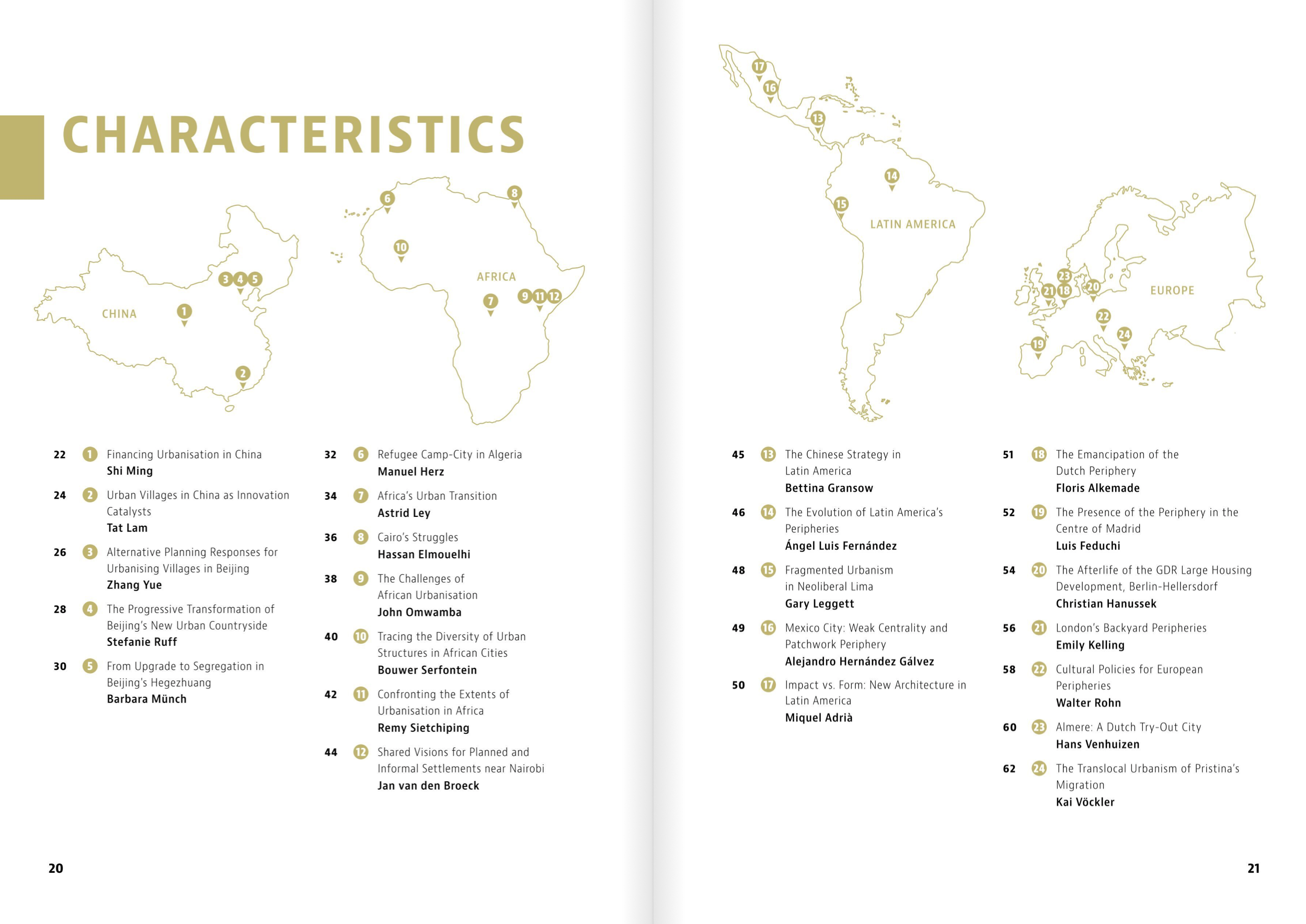 Summaries of the 48 responses presented by the discussion contributors are collected in the book; as Characteristics where they describe aspects of the periphery, or Actions where they are about projects in, or approaches to the periphery.